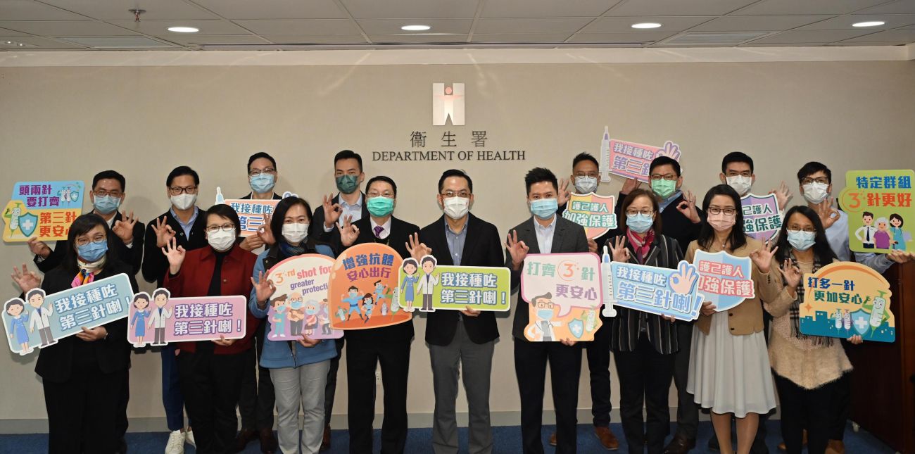 12月2日,衞生署署長林文健醫生今日(十二月二日)聯同多名衞生署服務主管,於衞生署診所接種第三劑新冠疫苗(克爾來福),並呼籲尚未接種第一、二劑疫苗的市民盡快接種,護己護人。