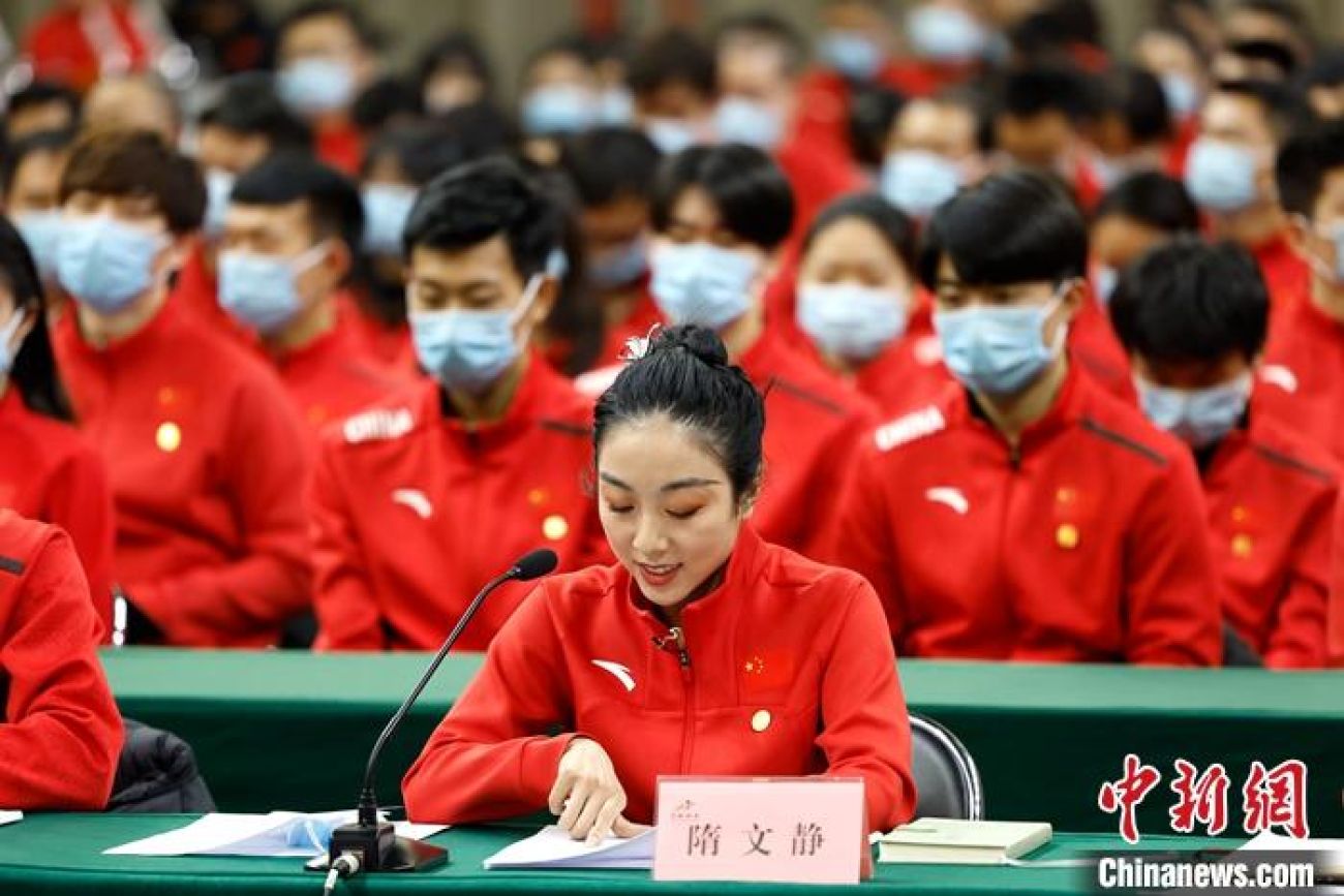 北京冬奧會開幕在即,“世界期待中國,中國準備好了”,衝刺備戰中的中國國家隊同樣準備好了。 5日晚在全力衝刺北京冬奧座談會結束後,中國冰雪國家集訓隊全體成員起立,齊聲高呼:“中國冰雪,加油!加油!加油!”