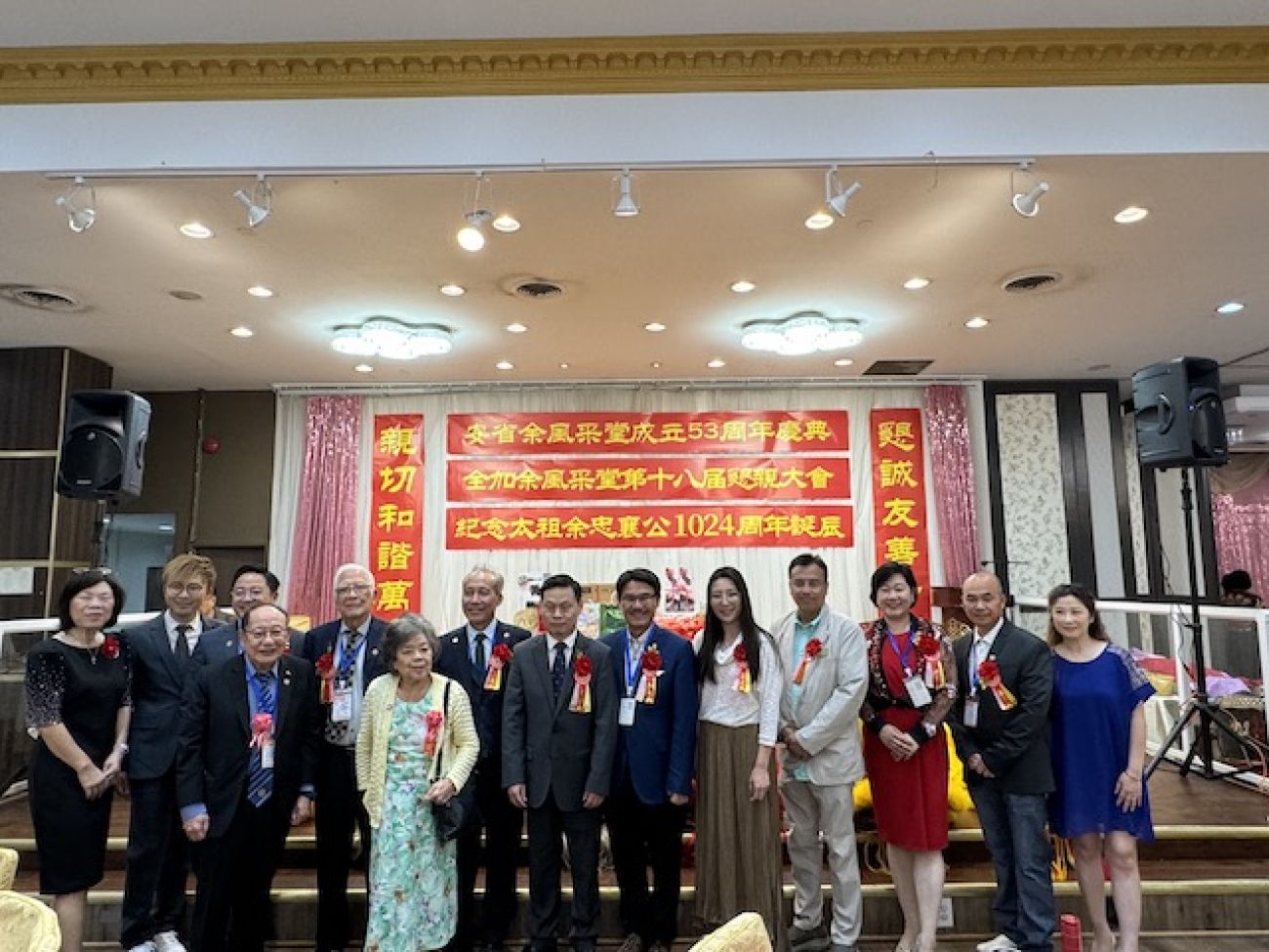 出席晚宴的嘉賓包括:中國駐多倫多總領事館程洪波副總領事、約克區區域議員何胡景、萬錦市議員第六區市楊綺清、萬錦市第八區市議員李思韻、列治文山市第六區市議員邵浩然。程洪波副總領事在講話中祝賀有50餘年歷史的安省余風采堂百尺竿頭再進一步,為在海外的鄉親同胞做出更多的貢獻。