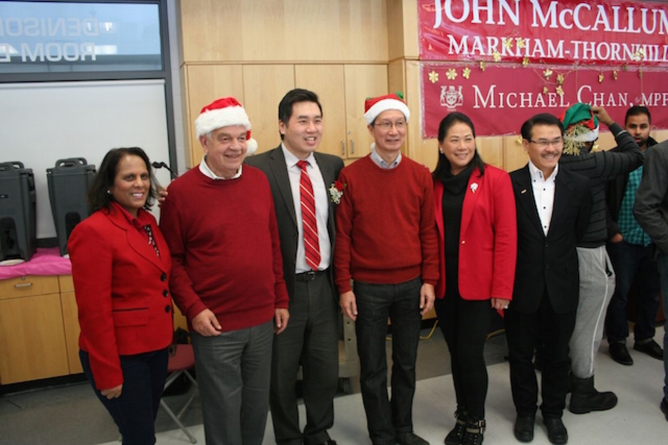 萬錦-於人村省議員陳國治(Michael Chan)和 萬錦-康山區國會議員麥家廉(John McCallum)聯合舉辦了假日招待會和爲食物庫募捐活動。當地百多名各族裔的居民參加了這一次聚會,很多人帶來專爲萬錦市食物庫(Food Bank)準備的食物和捐款,在聖誕年終之際,向本地區的弱勢羣體提供愛心關懷。