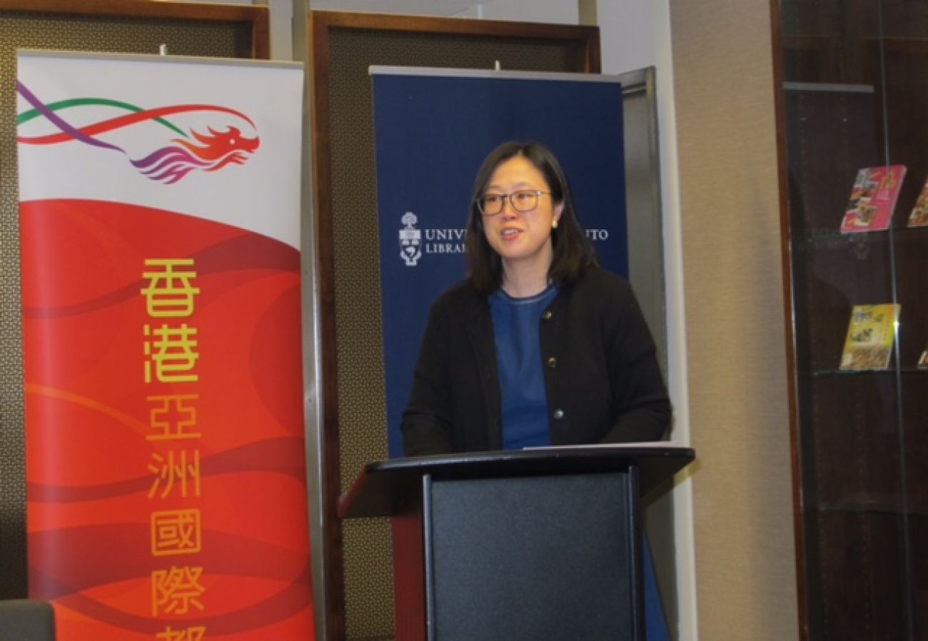 香港駐多倫多經濟貿易辦事處(香港經貿處)處長陳納思一月二十日出席由多倫多大學利銘澤典宬舉辦的首場以港加互動為題的系列講座。
