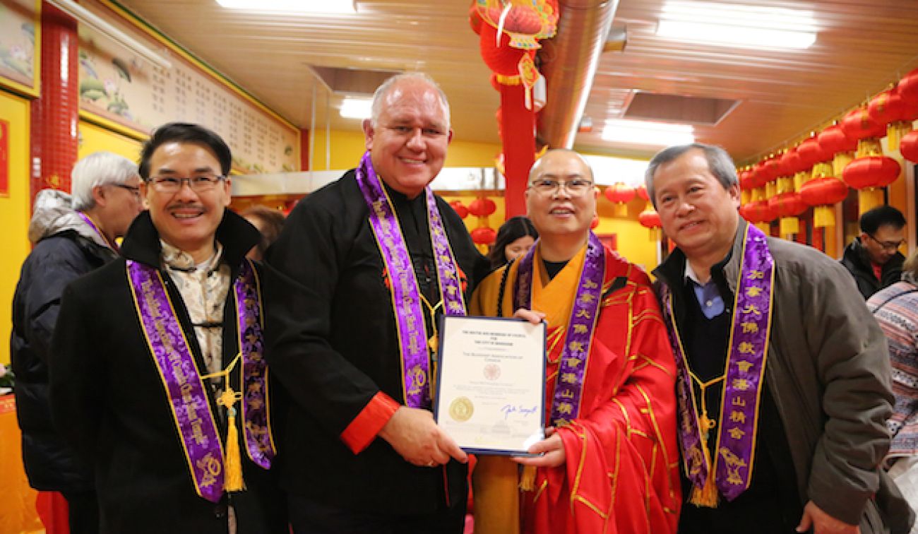 麥家廉大使在致辭中用英語和普通話向在場信眾和華人恭賀新年。艾哈邁德·胡賽因部長說:“加拿大人民和中國人民是好朋友。賈斯汀·特魯多總理領導的政府將致力於加強加中兩國的友好交流,促進兩國人民的經濟和文化交流。這方面,湛山精舍已經走出了一大步。”他並向湛山精舍長期致力於領導和建設加拿大佛教社區表示敬意。