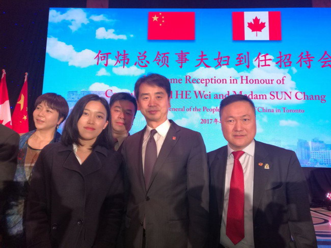 中國駐多倫多總領事舘總領事何煒3月30日到任,總領館於4月14日晚在烈治文山市釣魚台國宴,舉行新任總領事何煒伉儷到任招待會,出席嘉賓超過八百人,現場十分熱鬧。