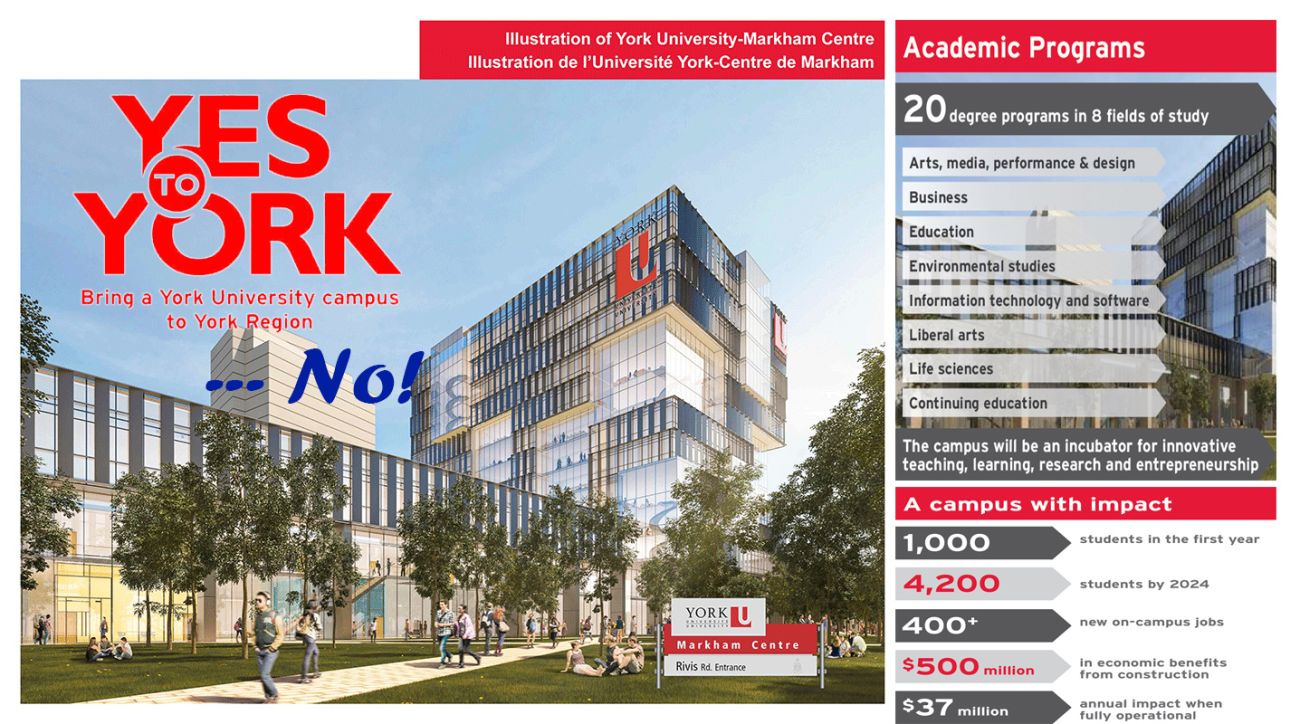 因此,全人類都會覺得省府這樣的短視舉動不可思議,約克區是唯一一個人口超過百萬而沒有大學的地區,省府的這一決定也令約克區蒙羞。更令人震驚的是代表萬錦市市民的省議員,在此之前他們對這個項目是舉手舉腳地支持,四肢朝天地贊成。現在卻不敢面對此事,不敢出聲,不敢回答媒體問題,加拿大的冬天還未到,他們提早噤若寒蟬,罔顧萬錦市民的利益。