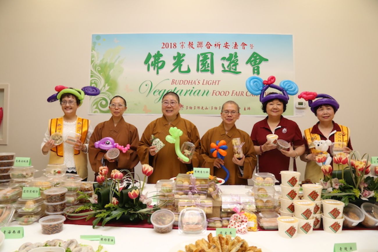 2018年佛光園遊會, 63個園遊攤位,匯集180種各地美食,攤位集中,便於選購。而且全是由佛光義工愛心自製、加工,食材新鮮,安全可靠。除了已有相當口碑的素小魚乾、海苔花生、台式素粽、台式炒米粉、麵線糊、素翅羹、楊枝甘露、素紮蹄、孜然烤串…等招牌食物,佛光義工也不斷的嘗試創新,推出許多有機、養生的食品和點心。