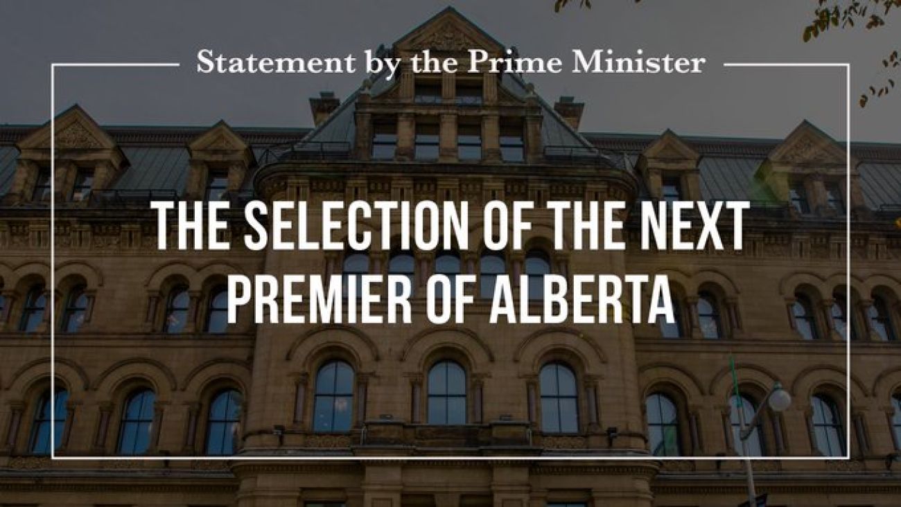 10月6日,賈斯汀·杜魯多(Justin Trudeau)總理就艾伯塔省下一任省長的人選發表如下聲明: