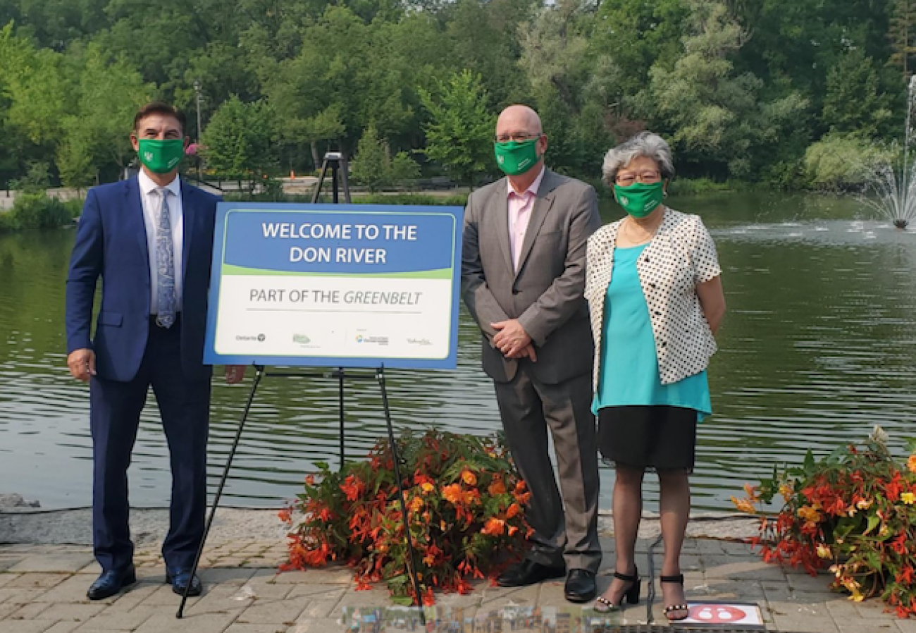 Richmond Hill — Today, MPP Daisy Wai, Richmond Hill, joined Steve Clark, Minister of Municipal Affairs and Housing, Edward McDonnell, CEO of the Greenbelt Foundation, and Joe DiPaola, Acting Mayor, City of Richmond Hill and Board Member of Toronto and Region Conservation Authority, to unveil a new sign recognizing the Don River as a protected urban river valley within the Greenbelt.