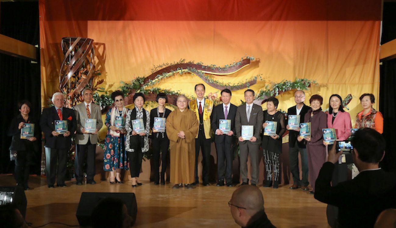 永固法師最後感動表示,為感謝大家的善心善行,特別從台灣空運全套365冊的〈星雲大師全集〉來多,分贈給所有嘉賓,希望大家將大師的智慧和慈悲帶回去「忠義傳家」。