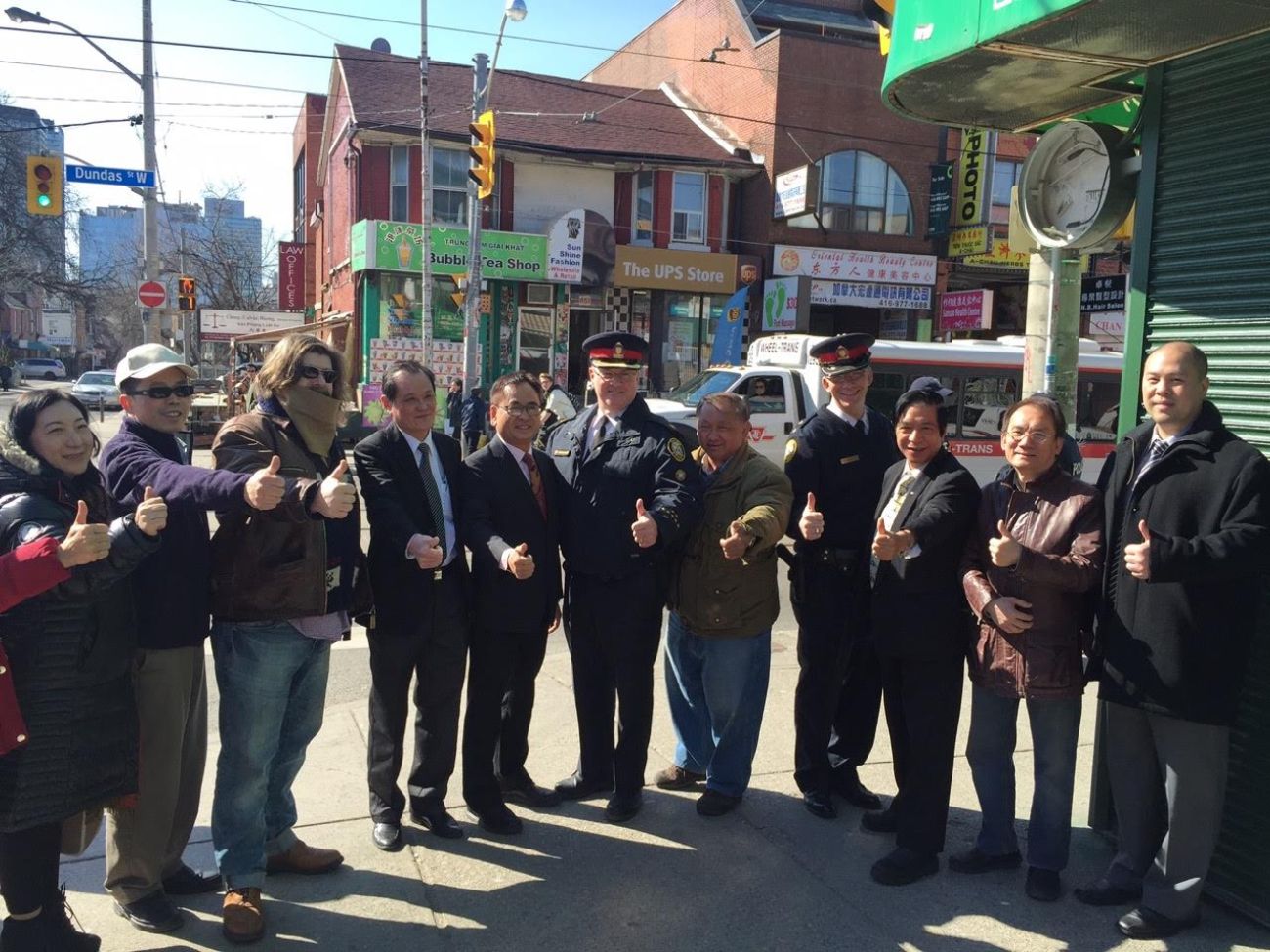 多倫多中區華埠促進區與主席余卓文先生表示近幾年唐人街安全已經大大改善,希望大家積極配合警方活動注意安全、防範犯罪分子,讓唐人街更加興榮。