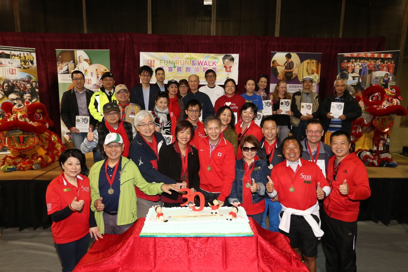 圖:出席「孟嘗義跑頌親恩」的嘉賓及贊助商與孟嘗會董事局成員一同慶祝三十週年切餅儀式。