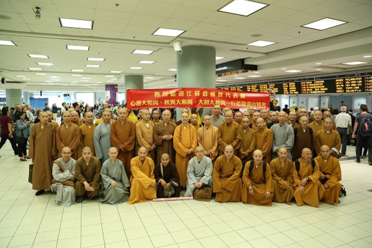 2016年6月9日下午,多倫多皮爾遜國際機場不同以往,加拿大佛教會湛山精舍四眾弟子在達義大和尚的帶領下迎來近60位從中國江蘇來的的法師。
