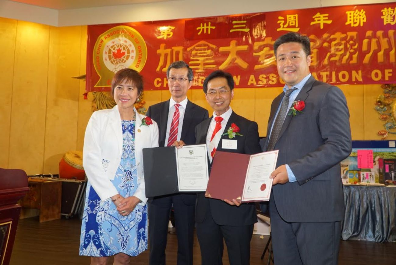 安省省議員陳國治、黃素梅及董唅鵬,昨(週六)晚參加了加拿大安省潮州會館成立33週年的聯歡晚宴。