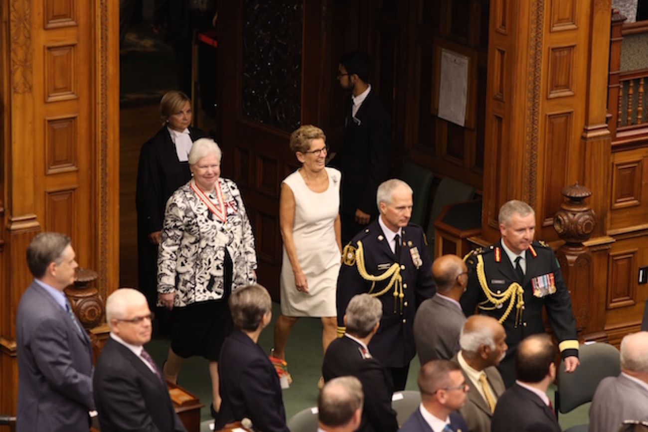 圖示﹕安省省長韋恩與省督杜德絲威爾一起進入省議會。
