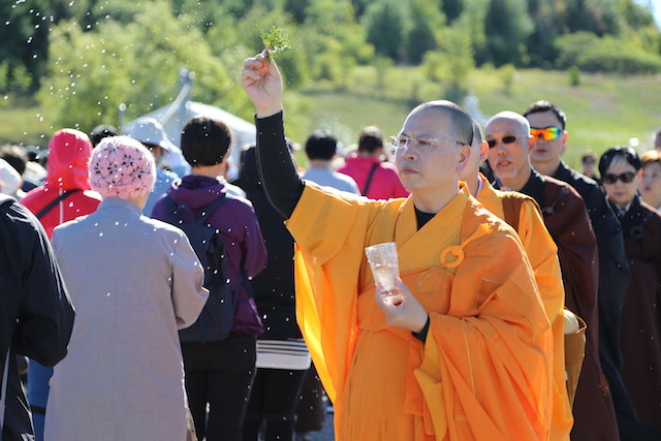 加拿大佛教會會長湛山精舍住持達義大和尚帶領300多位信眾在加拿大五臺山三步一拜朝禮加國五臺山。其中有83歲的耆老,有5歲的孩童。大眾一心稱念南無文殊師利菩薩,從山門三步一拜到山頂,歷經六個小時,佛號不斷,每一拜都充滿信心、每一拜都是和文殊菩薩傾心的溝通、每一拜都得諸佛的加持。