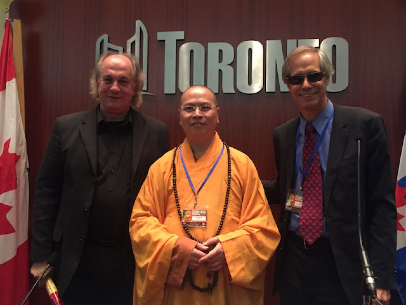 加拿大佛教會湛山精舍住持達義大和尚,應邀出席了在多倫多市政廳舉行的第三屆佛教三大傳承年度主題對話,和三大語系的法師代表及多倫多大學的佛學教授、約克大學的佛教學者一起從禪的角度來探討身心靈健康。來自佛教三大語系傳承的法師以及學術界的學者們從不同的角度闡述了禪與身心靈方面的關係。
