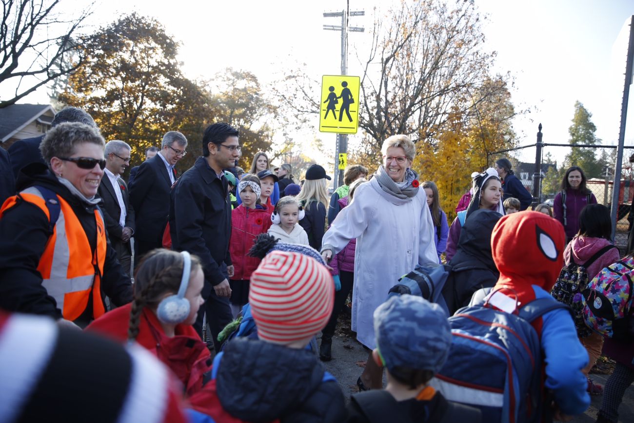 圖示﹕省長韋恩在渥太華陪同學童一起走路上學。