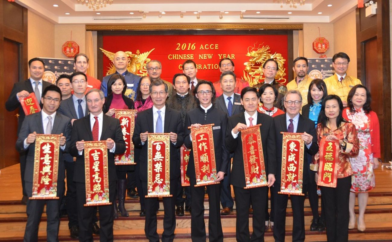 金猴献瑞财源广,银树呈祥花果硕。ACCE創業協進會於2月16日在鑽石喜宴酒家舉辦2016 ACCE猴年春節聯歡晚會。出席晚會的有政府代表、創業家、以及工商界名流等近400人。會上榮幸邀請到加拿大安省移民及國際貿易廳長陳國治、安省原住民厅长萧深闻(David Zimmer)、中國駐多倫多總領館總領事薛冰和夫人趙珺、中國駐多倫多總領事館參讚于建偉、中國駐多倫多總領事館領事馬連斐、香港經貿處副處長Nick Choi、萬錦市區域議員Nirmala Armstrong、萬錦市議員楊綺清及列治文山市議員陳志輝等政界要員。