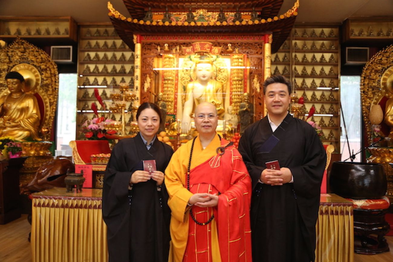 4月29日(農曆四月初四)文殊師利菩薩聖誕,加拿大安大略省議員董晗鵬和夫人一早來到湛山精舍,接受三皈五戒,發心皈依佛門。
