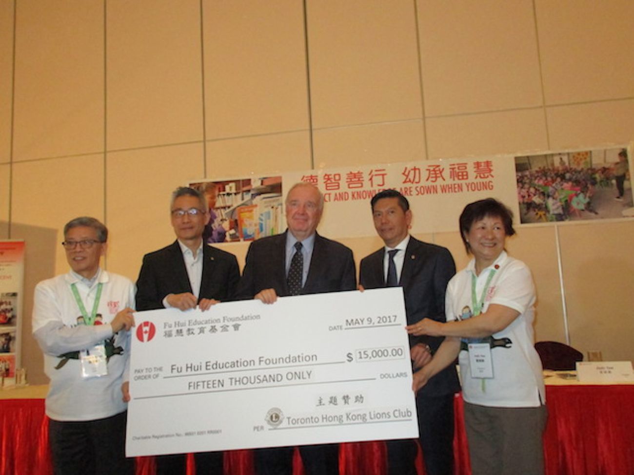 釣魚台國宴馬松林第十年贊助福宴,參加過三次中國 探訪的馬松林感歎轉眼與福慧已結緣十年,每次福宴看到孩子的進步都感動不已。福慧低調的辦學及堅持是他決心支持福宴 的重要推動力,希望能為福慧爭取更多善款惠及更多孩子。代表本屆福宴,兩位主席感謝主題贊助商【多倫多香港獅子會】 捐贈的一萬五千加幣,以及匯豐銀行捐贈五千加幣用於對原住民學校營養計劃的支持。