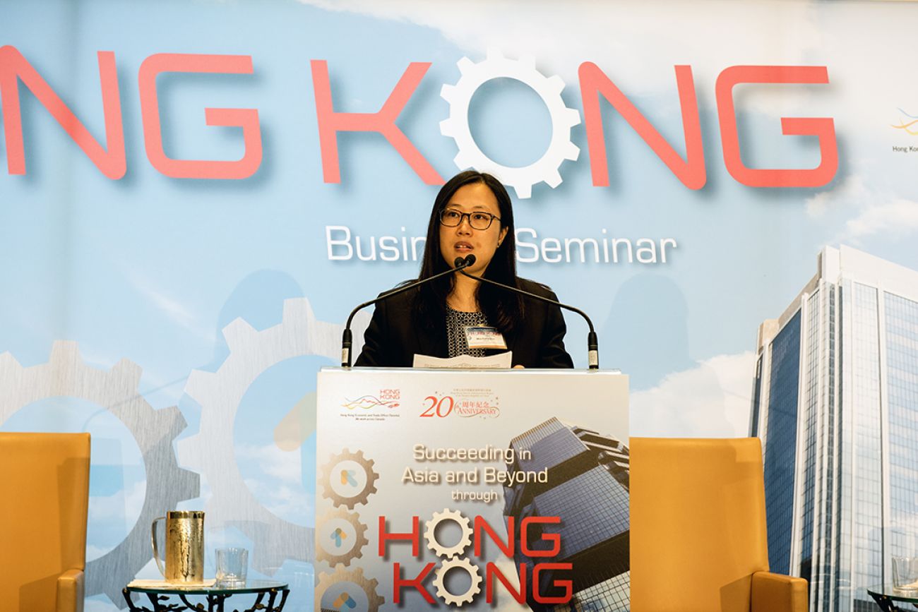多倫多經貿處處長陳納思致歡迎辭時表示,香港是優良的營商地方。她說:「香港除了是一個自由開放的市場,為世界各地企業提供公平的營商環境外,亦有眾多無可比擬的優勢,例如香港奉行法治、司法獨立、擁有高效率及廉潔的政府、實行簡單稅制及低稅率、並擁有大量通曉中英語的專業人才。」稅務方面,她特別指出香港特區行政長官林鄭月娥剛於上星期發表的《施政報告》中,建議推行兩項重要措施。陳納思說:「首先,在利得稅方面,企業首200萬元利潤(約加幣30萬元)的利得稅率將由16.5%減半至8.25%。第二,研發開支將獲額外扣稅,建議首200萬元(約加幣30萬元)的合資格研發開支可獲300%扣稅,餘額則獲200%扣稅。」