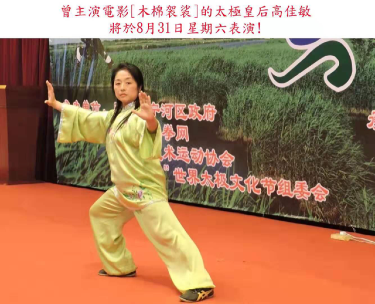 鄧華續稱,全場較為人熟悉及有眾多粉絲的應該是現居美國加州被稱太極皇后的高佳敏師傅,高佳敏被國際武壇及國內外報刊譽為「太極女皇」「太極女神」的美稱,傳頌至今,幾無異議,她的「佳敏腿」腳高過肩,更被視為太極比賽的典範。她於1989年至1998年十年間,參加各類世界、全國太極拳、劍的比賽中,共獲金牌32枚,至今未有人超越的「大滿貫」太極拳運動員。