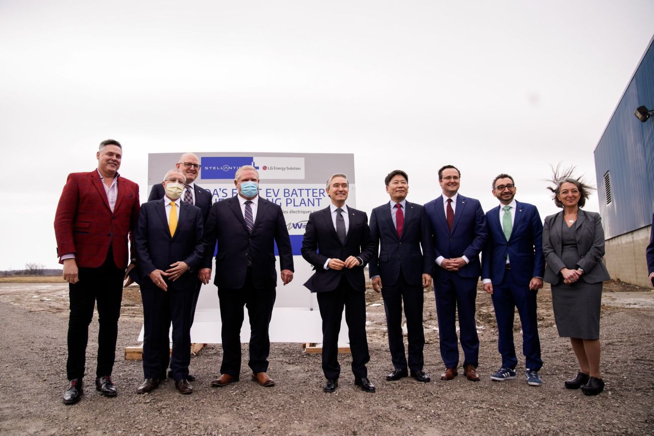 3月23日,聯邦創新、科學和工業部長商鵬飛(François-Philippe Champagne)閣下、安大略省長道格·福特(Doug Ford)閣下和溫莎市市長德魯-迪肯斯(Drew Dilkens)宣布,三級政府歡迎全球領先的電池製造公司之一LG能源解決方案公司(LG Energy Solution)和汽車製造商斯特蘭蒂斯(Stellantis N.V.)的重大投資,在加拿大建立一家合資企業。這個合資企業將投資總額超過50億加元(41億美元),在加拿大建立一個製造電動汽車電池的生產設施。這將使加拿大成為電動車製造供應鏈中的全球領導者。該電池廠將位於安大略省溫莎市,並將為斯特蘭蒂斯在溫莎和整個北美的工廠供貨。該設施將於2025年投產使用。