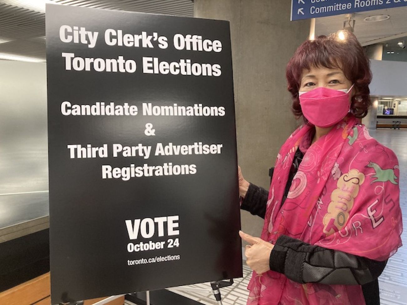 封賴桂霞市議員今早在多倫多市政廳提交登記文件,參加市選,在 23 區士嘉堡北競逐連任。賴議員於 2018 年首次當選。