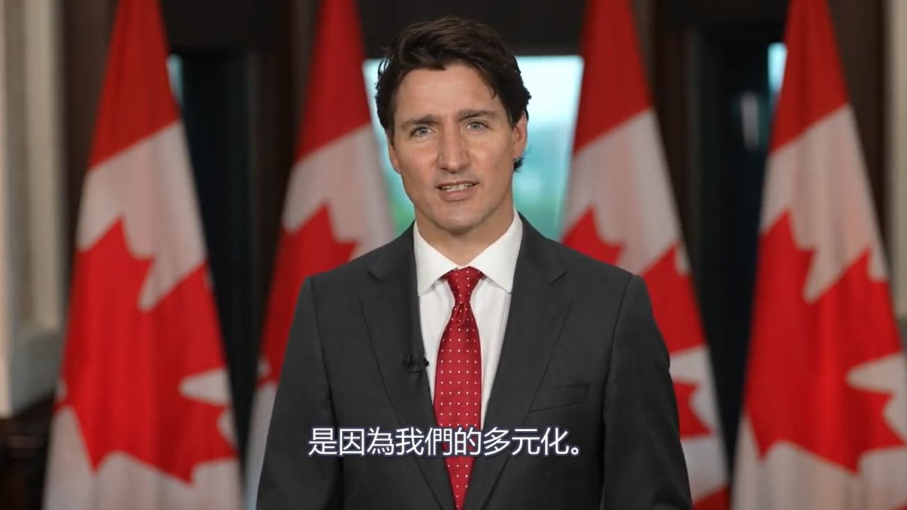 "加拿大之所以強勁,是因為我們的多元化。無論我們的信仰,我們的出生地,我們的膚色,我們所講的語言,或者是我們所愛之人——我們都是這個偉大國家的平等成員。