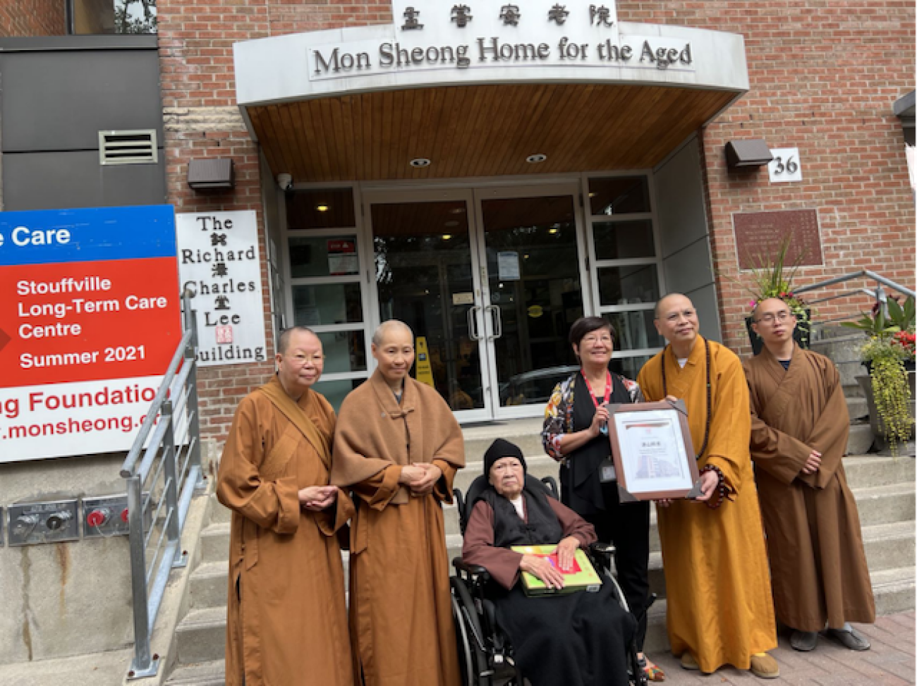 同一天,湛山精舍的法師和義工們還走訪了位於世嘉堡的孟嘗長期護理中心,為長者送上中秋月餅和慰問。孟嘗會向湛山精舍回贈了感謝狀。