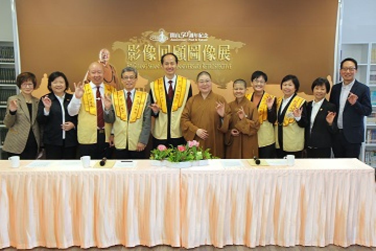 圖:為慶祝佛光山開山五十週年,全球佛光道場同步於當地時間2016年5月16日舉辦「佛光山開山五十週年影像回顧圖像展」,多倫多佛光山特別於5月3日舉行影像回顧圖像展記者會。多倫多佛光山住持永固法師、國際佛光會多倫多協會會長陳偉才、副會長何美寶、王元樞等共同主持。