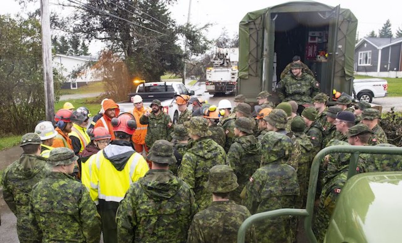 在新斯科舍省,加軍部隊(主要是隸屬於加軍第五師的部隊)正在現場,幫助清理道路、橋樑和電力輸送纜周邊的廢墟。一個由預備役成員組成的國內快反連也趕赴布雷頓角(Cape Breton)。