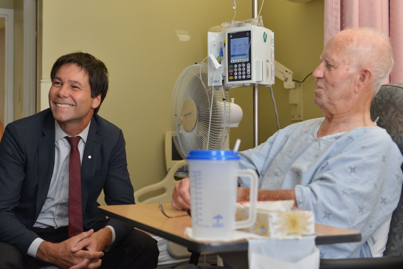 安省衛生及長期護理廳廳長賀施金(Dr. Eric Hoskins)在Campbellofrd Memorial Hospital醫院探望病人。