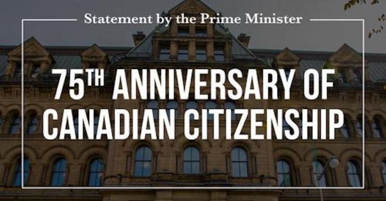 1月1日,賈斯廷·杜魯多總理就加拿大公民身份誕生 75 週年發表如下聲明: