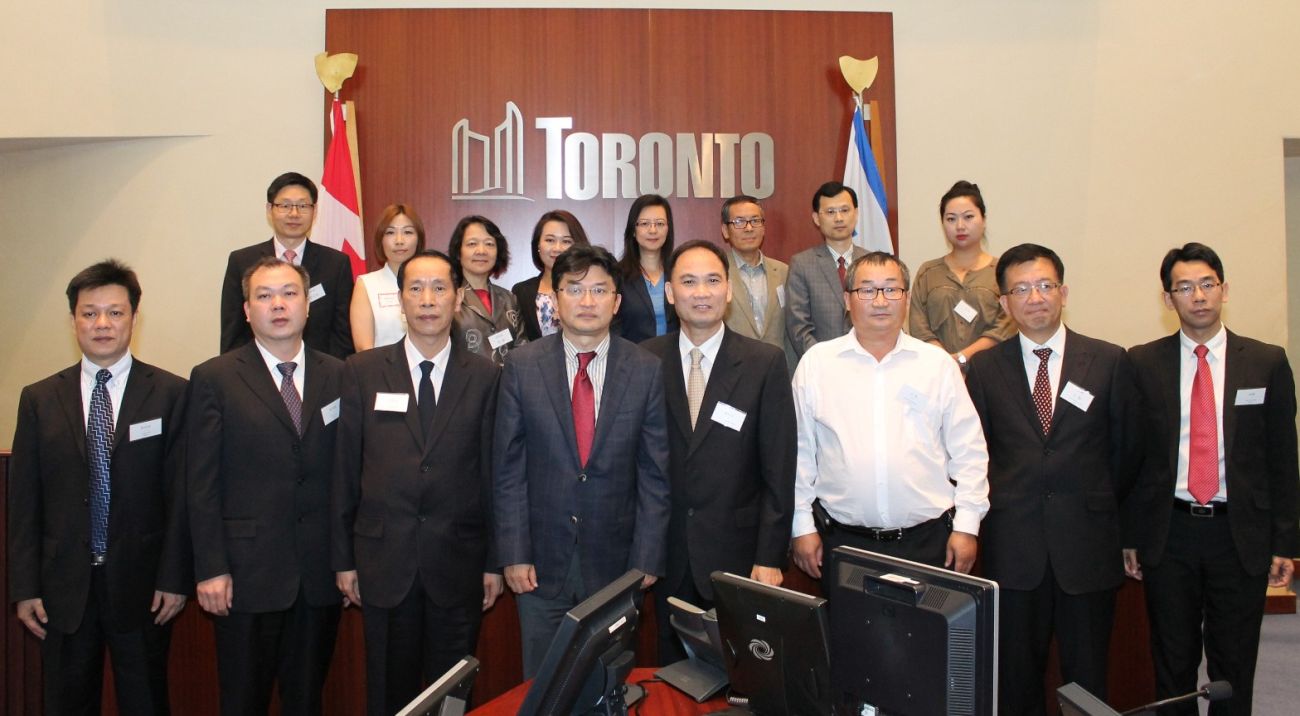 圖片說明:“2016廣東海外人才項目洽談會”嘉賓合影:廣東省人才代表團團長謝樹興副廳長(左5)、中國駐多倫多總領館張傳兵副總領事(左4)、CPAC副會長王體(右2)、中國國家外專局駐多倫多總代表呂革(右3)