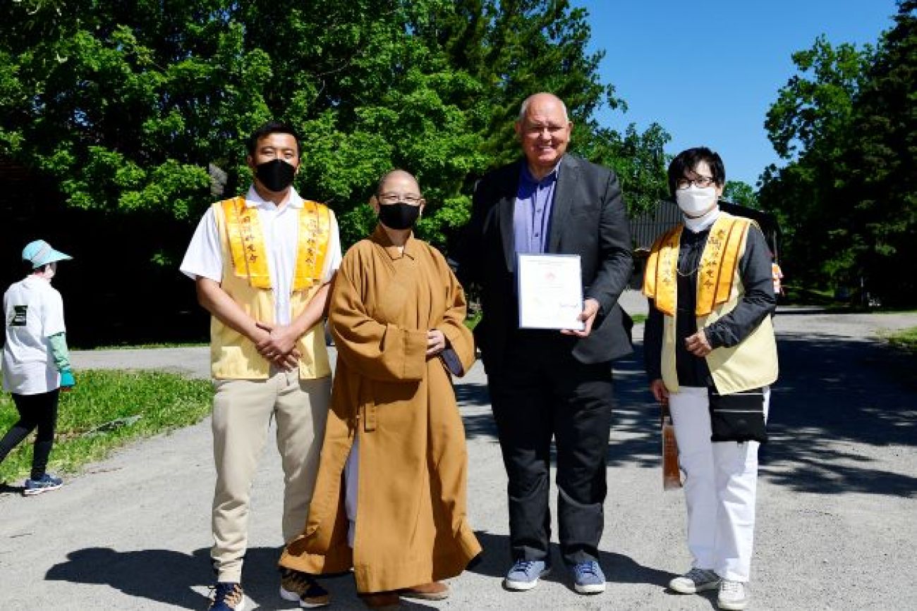 萬錦市市長薛家平Mayor Frank Scarpitti表示「非常高興多倫多國際佛光會能選擇萬錦市最具歷史文化價值的博物館園區,來舉辦這麼有意義的活動,推廣素食及環保。」國會議員蔣振宇表示,風和日麗的天氣很適合義走及跑步,尤其高興能看到這麼多的年輕人共同參與。萬錦市議員李思韻說「兩年來大家都居家防疫,很高興能再與大家見面,個人選區就是萬錦佛光緣所在,希望日後有更多合作的機會。」