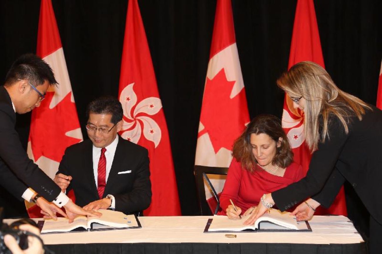 The Secretary for Commerce and Economic Development, Mr Gregory So, today (February 10, Toronto time) representing the Government of the Hong Kong Special Administrative Region, signed an Investment Promotion and Protection Agreement (IPPA) in Toronto, Canada, together with the Canadian Minister of International Trade, Ms Chrystia Freeland.